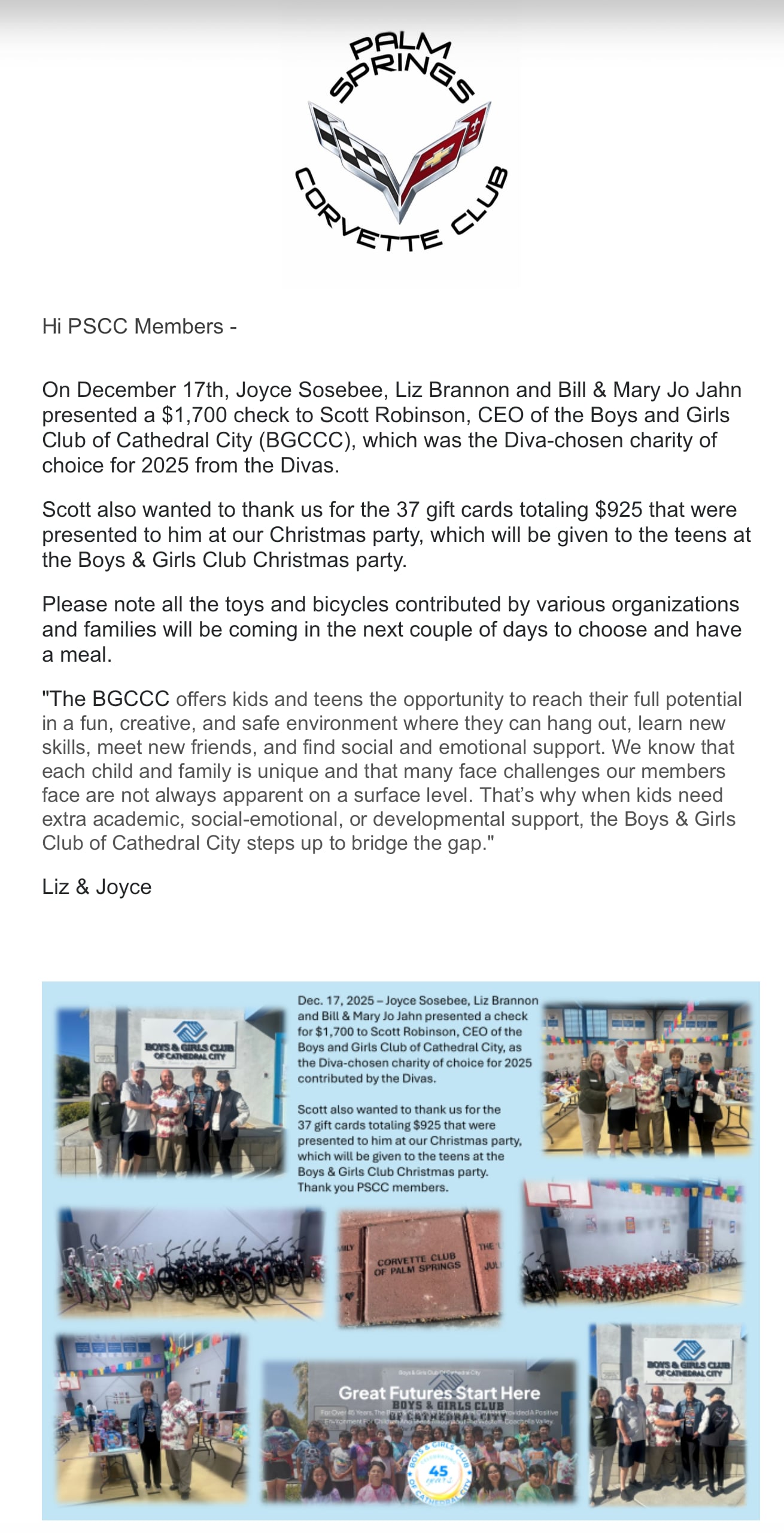 2025 Donations to the Boys and Girls Club of Cathedral City