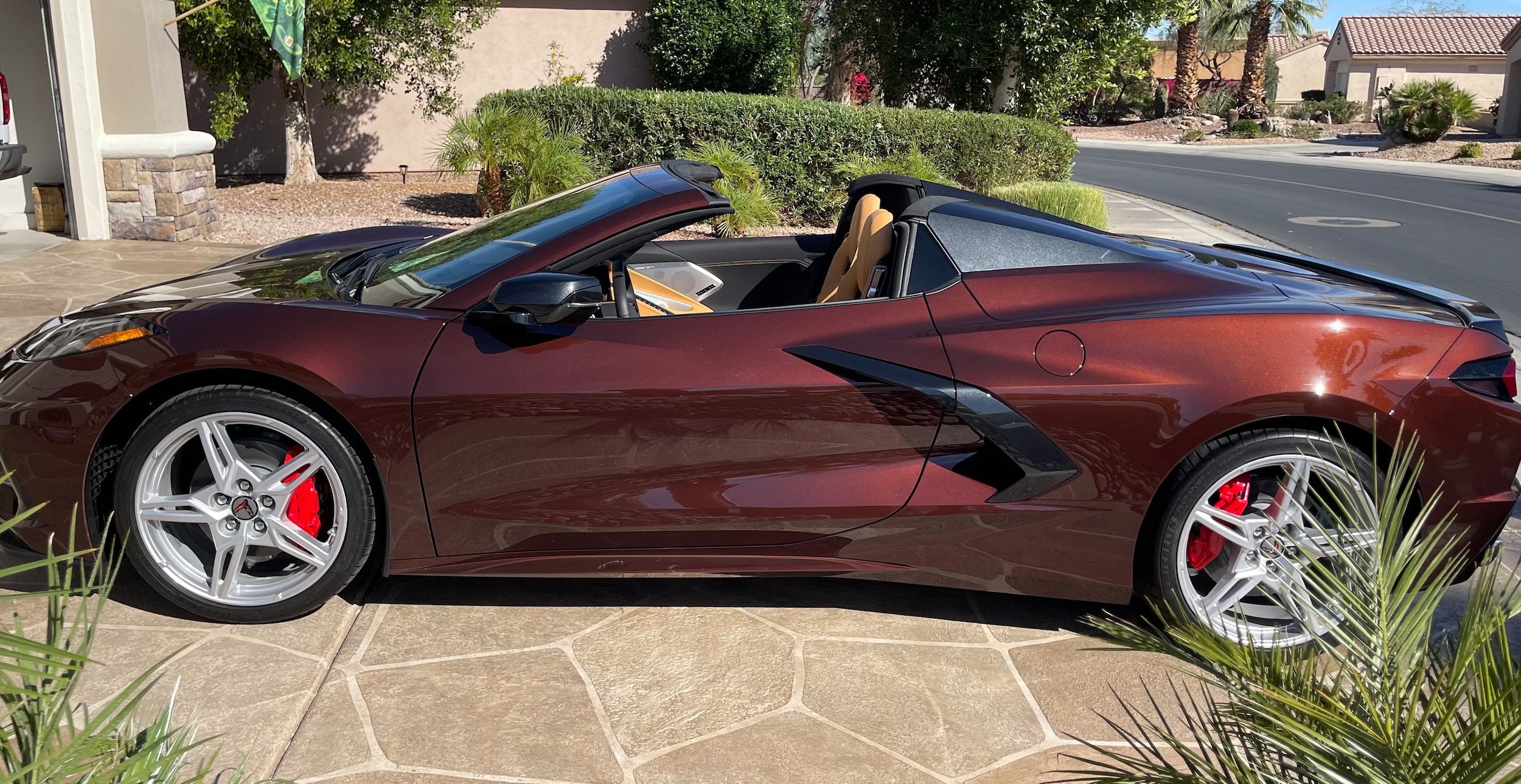 They have been coming to the desert since 1986, bought their home in Palm Desert in 2010. They split their time between Tucson and Palm Desert. this beautiful 2022 caffeine colored Corvette Stingray is there first.